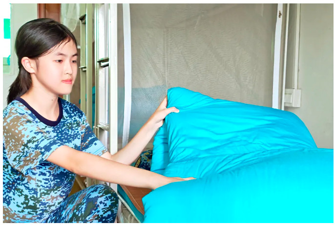 现在我每天六点半准时起床,连被子都能叠出标准的“豆腐块”,回家一定要秀给家人看!