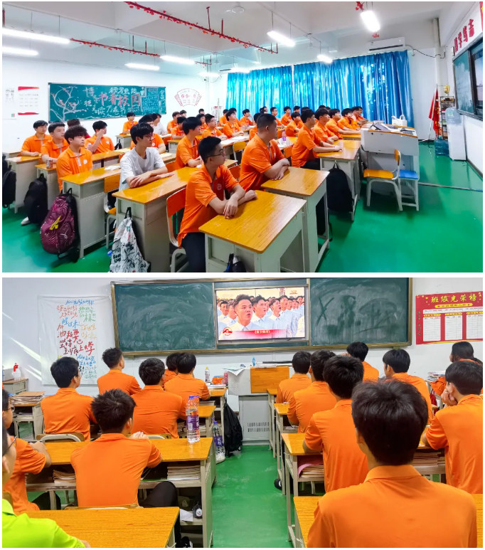 一大早,还没到直播时间,教室里就坐满了师生,大家眼里都透着期待,怀着激动又崇敬的心情守在屏幕前,等待这场展现国家力量与和平信念的盛典。
