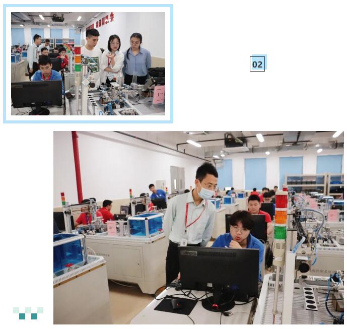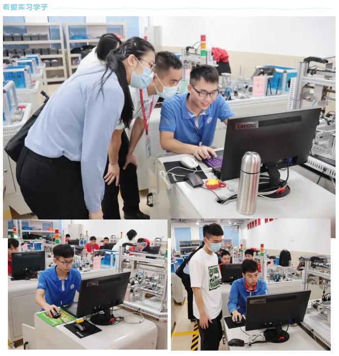 校领导一行特别来到中心的工业机器人系统集成实训室看望南方IT学子。在实训室内,只见学子们都在认真钻研,争分夺秒地投入到实习岗位中。高训中心领导表示,同学们的专业知识扎实、工作积极主动,表现出良好的职业素养,其岗位适应能力值得肯定。