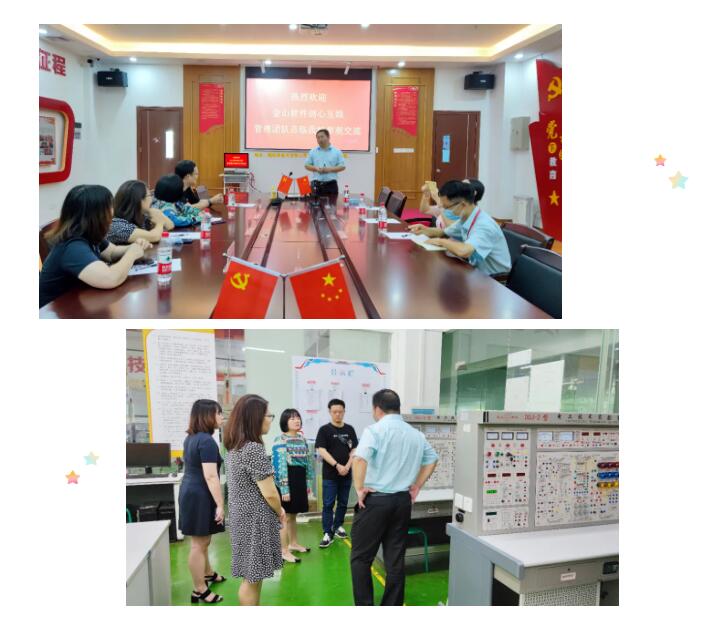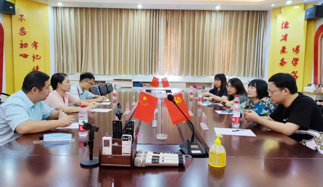 共商发展大计,共谋合作良策。参观结束后,双方移步至党建会议室开展座谈会。为让各位来宾充分了解我们学校,由教育教学主任涂乾文老师详细地对我校的发展历程、文化理念、专业设置、党建、“技能+德育”的育人特色以及所取得的就业成果作综合介绍。领导们和老师们都聚精会神地聆听。